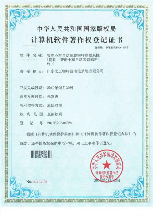 软件著作权 智能小车自动装卸物料