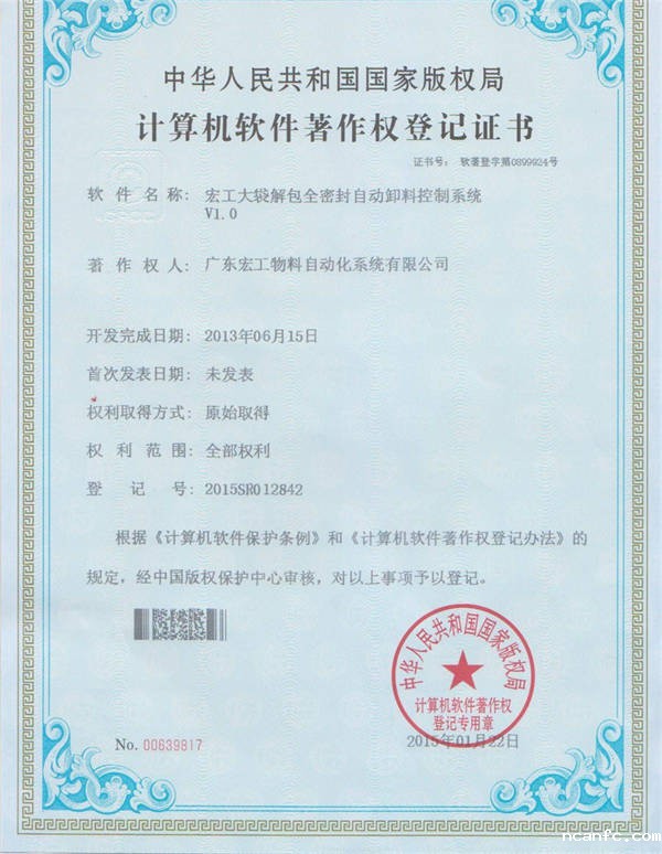 软件著作权-星空电竞app下载苹果版官网大袋解包全密封自动卸料控制系统V1.0